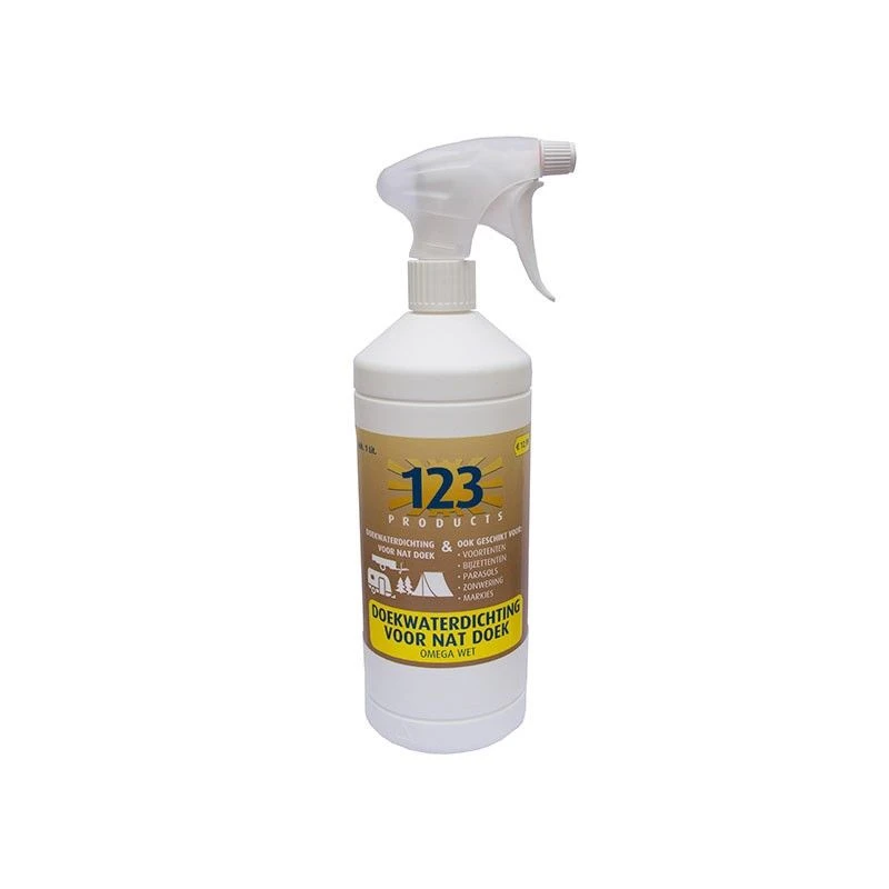 Deze Omega Wet waterdichting van 123 Products is geschikt voor vrijwel alle tentdoeken. Dit middel kunt u gebruiken om uw natte tentdoek te impregneren als deze tussen de buien door niet meer droog wordt. Het is raadzaam om deze waterdichting te gebruiken op het moment dat het niet regent. Bij droog weer is de tent na ongeveer 30 minuten weer waterdicht.