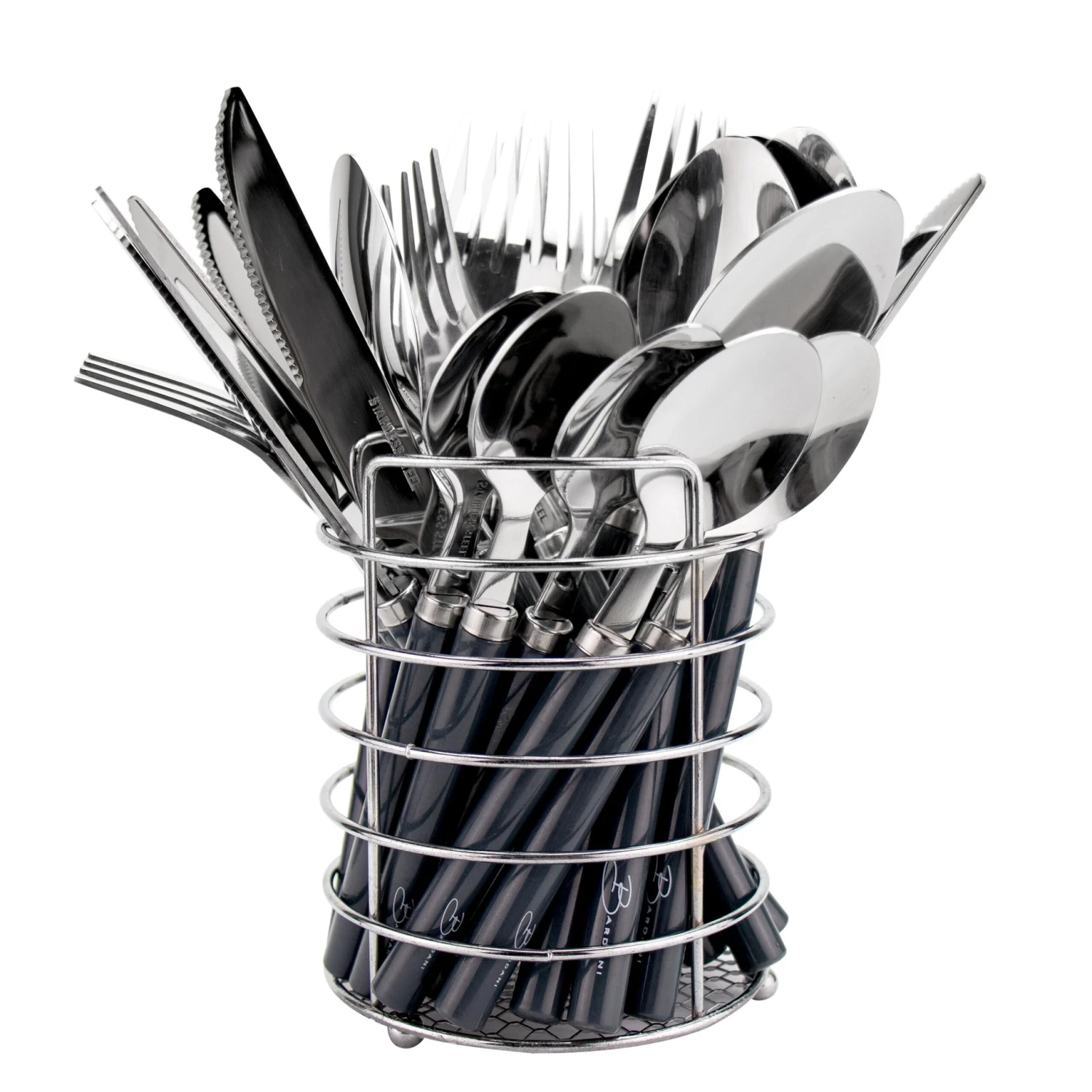 De Bardani 24-delige bestekset bestaat uit zes vorken, zes lepels, zes messen en zes theelepels. Deze Bardani bestekset wordt geleverd met draadmand.