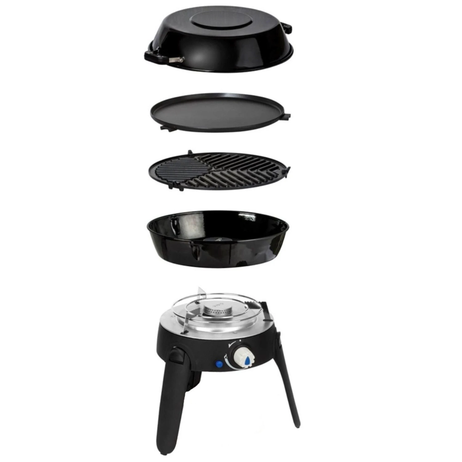 De Safari Chef 30 wordt geleverd met vier verwisselbare kookoppervlakken; een brander met pandrager, een barbecuerooster, een bakplaat en een pan die tevens als deksel te gebruiken is. Voor nog meer mogelijkheden qua bakken en braden kan de Safari Chef 30 worden uitgebreid met de Paella Pan van 28 centimeter.
