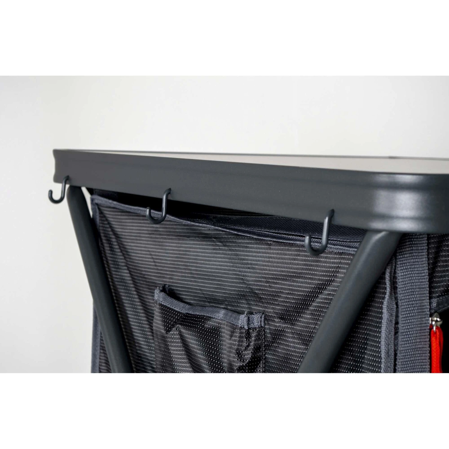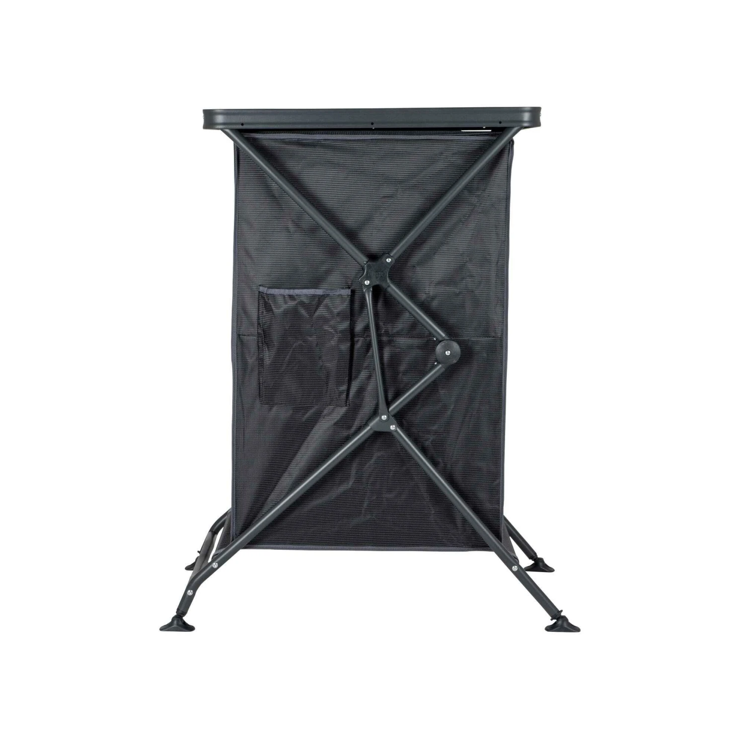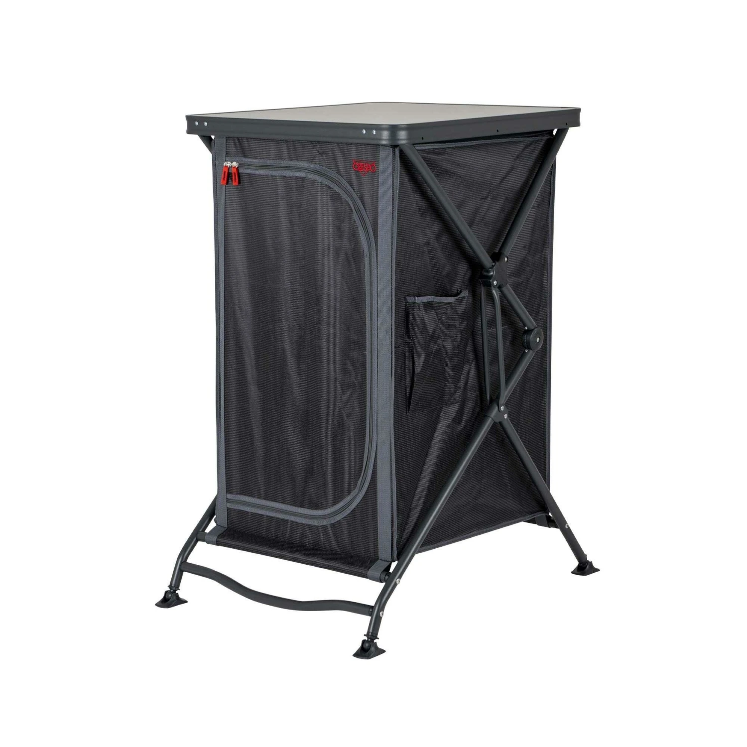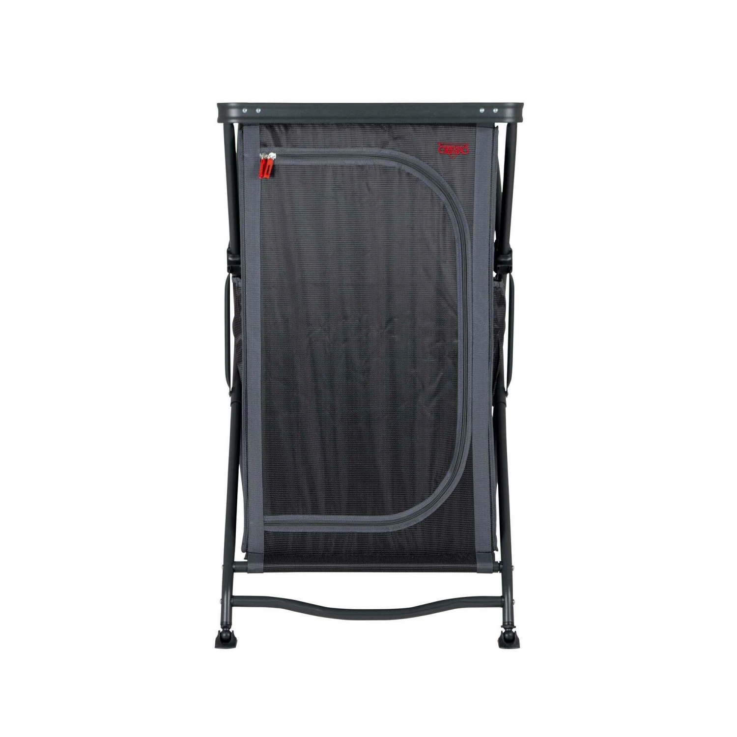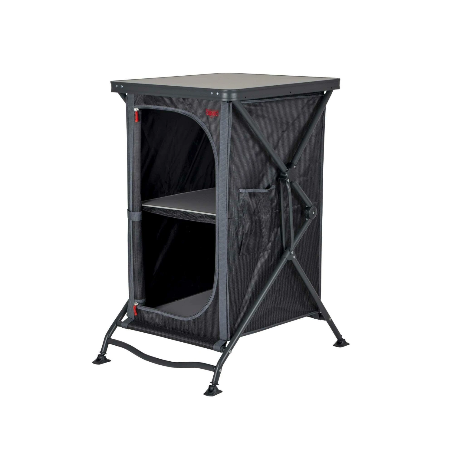 De Crespo AP-103 opbergkast laag is een stevige en stabiele kast. De opbergkast van Crespo is eenvoudig op te zetten door het unieke systeem. De legkast heeft een aluminium frame met een melamine oplegblad. Dit grijze blad is hittebestendig én watervast. De poten met stabilisatoren zijn afzonderlijk af te stellen zodat de kast op elke ondergrond stevig staat. De hoes is gemaakt van 400 denier polyester. De kast heeft ingeklapt een lengte van 78 cm, een breedte van 56 cm en een hoogte van 14 cm. Wordt geleverd inclusief handige draagtas.