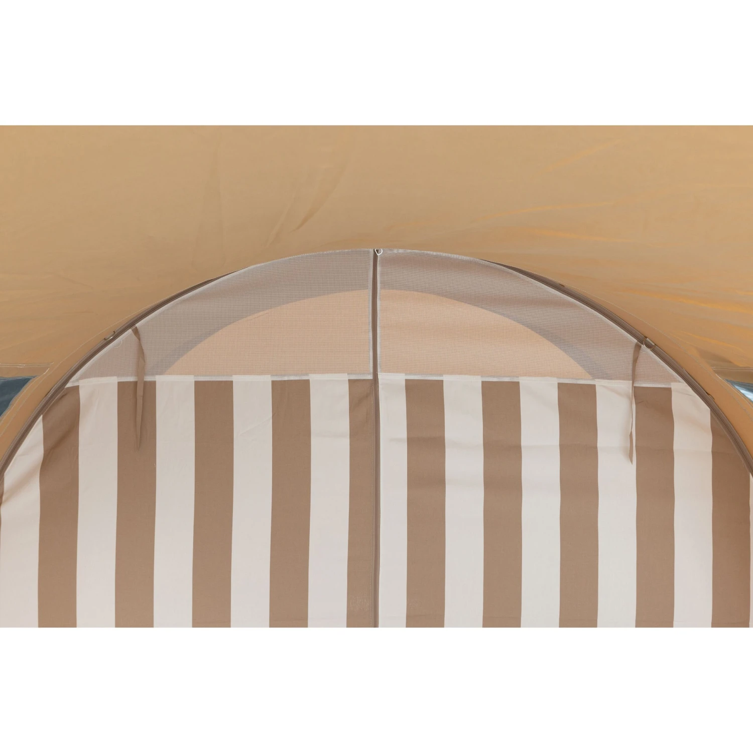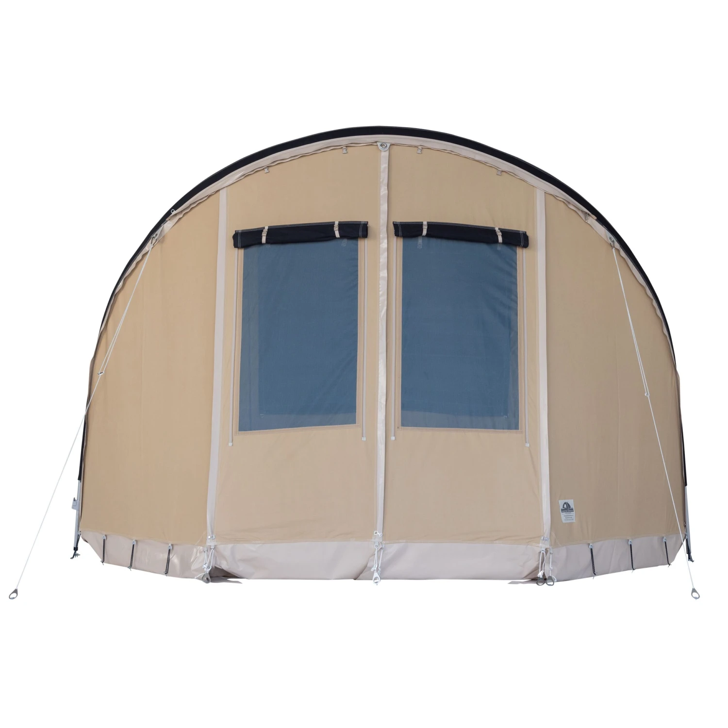 De Lacerta tunneltent is voorzien van een neerklapbaar bisonyl grondzeil. Het grondzeil heeft een hoge rand van 25 centimeter om water, wind en ongedierte buiten te houden. Daarnaast is het zeil naar te klappen bij de entree voor gemakkelijke entree tot de tent. De buitentent is gemaakt van 100% Ten Cate katoen, dit versterkt het ademende vermogen van de tent. Met de grote ramen aan weerszijden en overige ventilatieopties kan de temperatuur in de tent worden afgesteld tot op zekere hoogte. De tent is standaard voorzien van twee gaasramen met raamoverflap aan de voorkant.