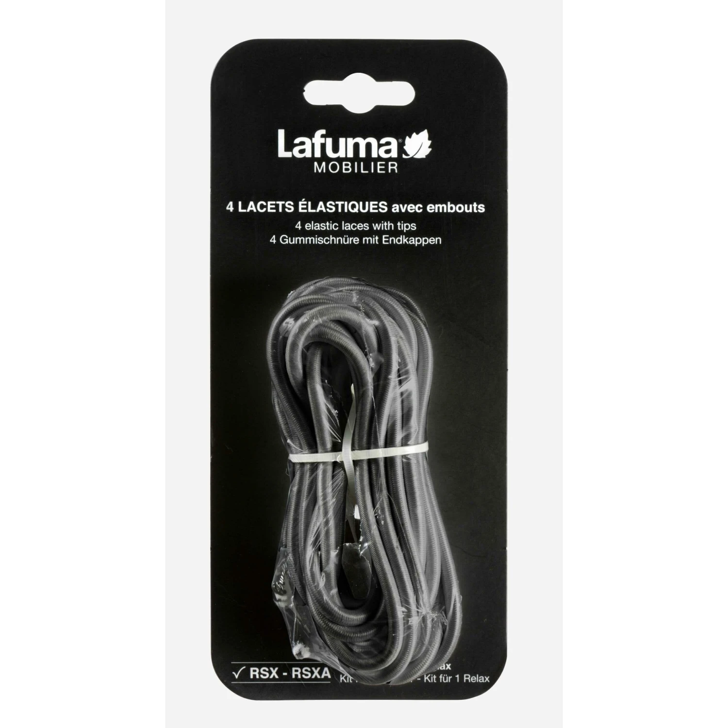 Deze Lafuma set van 4 elastieken met uiteinden zijn geschikt voor de RSX en RSXA relaxstoelen. De elastieken zijn makkelijk te vervangen voor nieuwe en zitten meteen stevig.