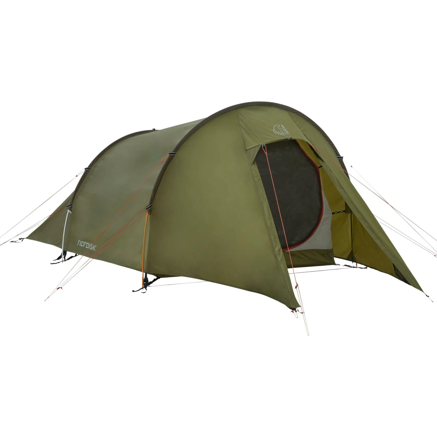 De Nordisk Halland 2 PU lichtgewicht tunneltent is ideaal voor bijvoorbeeld fietskampeerders en motorkampeerders die compact op pad willen. De tent weegt slechts 3 kg en heeft een pakmaat van 50 centimter lang en een diamater van 15 centimeter. Daarbij zijn ook compressie straps op de draagtas geplaatst. Naast de slaapplaats voor 2 personen is er ook een voorportaal.