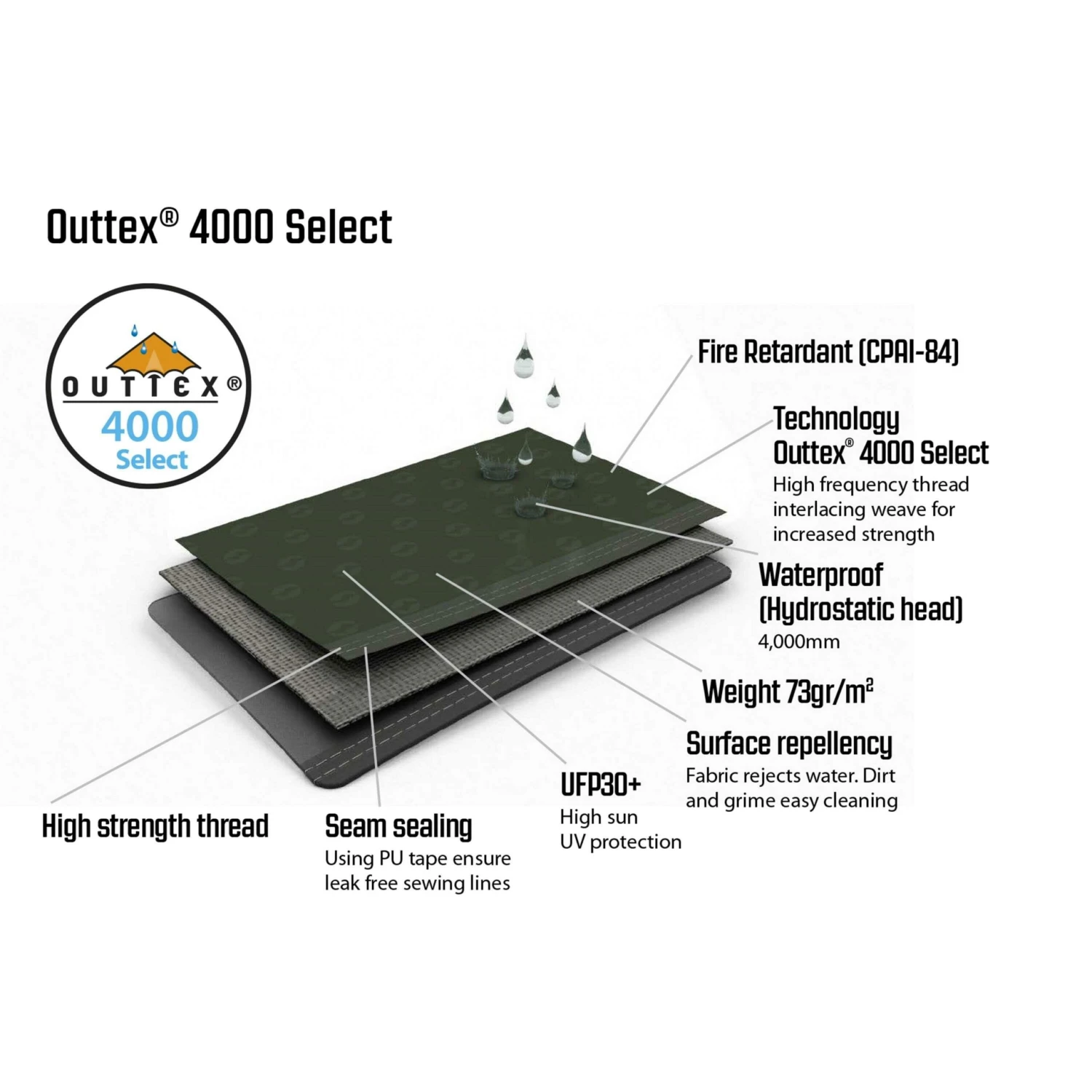 Als het regent kunt u lekker droog in de familietent zitten. De waterdichte buitentent en grondzeil zorgen er namelijk voor dat er geen water binnen de tent komt. Dankzij de verschillende ventilatiemogelijkheden is er een comfortabele luchtstroom.