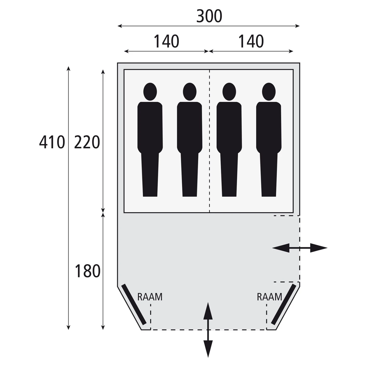 | Afmetingen tent l x b in cm | 410 x 300 cm |