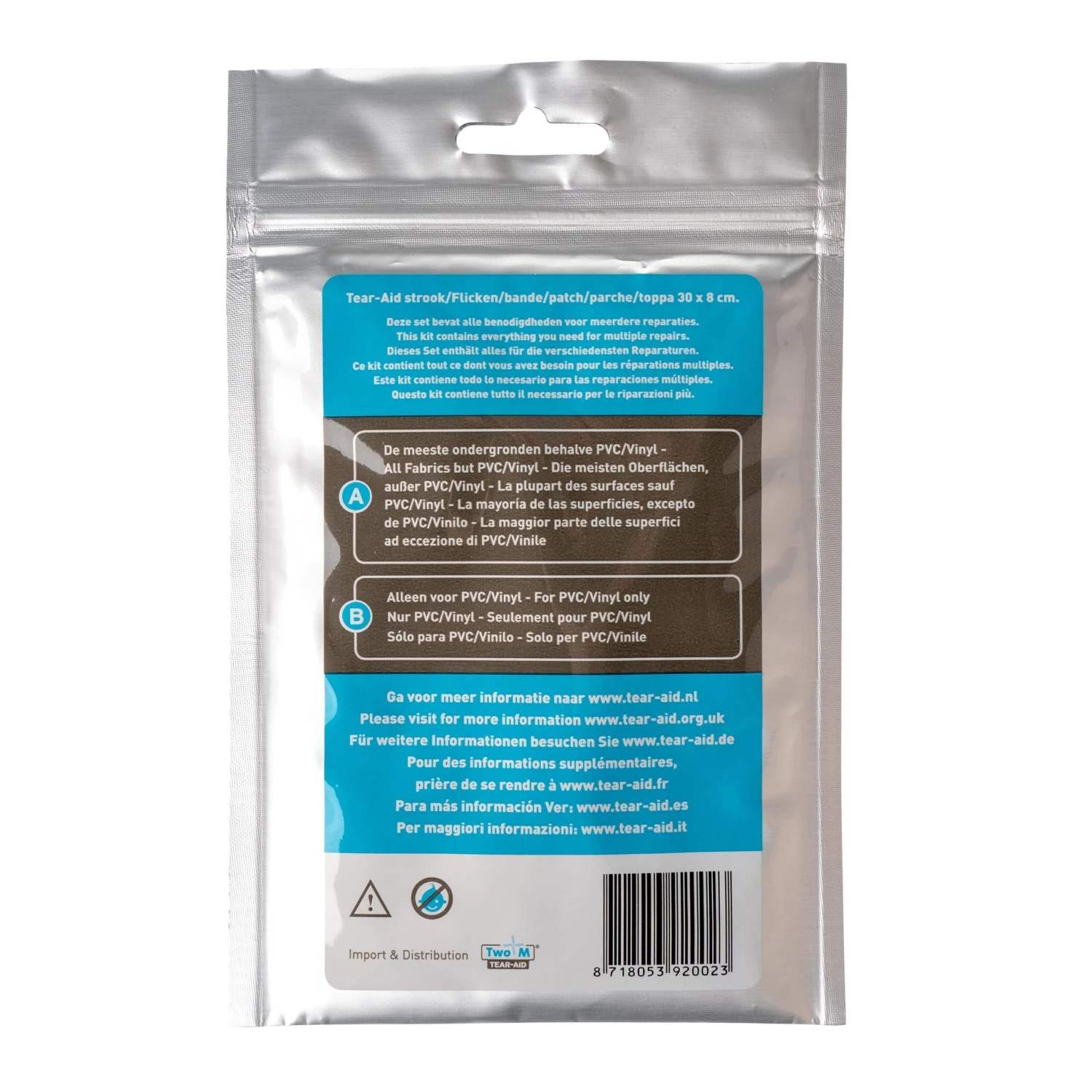 Het Tear-Aid reparatiemiddel type B is geschikt voor PVC en vinyl. Dit middel is direct gebruiksklaar en heeft een 100% hechting na 24 uur. Het middel repareert bijvoorbeeld tentdoek, boten, zonne- en regenschermen, jassen en tassen. Reparaties met Tear-Aid zijn extreem sterk, waterdicht, luchtdicht, zeer elastisch, verkleuren niet, drogen niet uit en zijn permanent. Het reparatiemiddel kan toegepast worden bij temperaturen van -30°C tot +60°C, rekt op en veert mee.