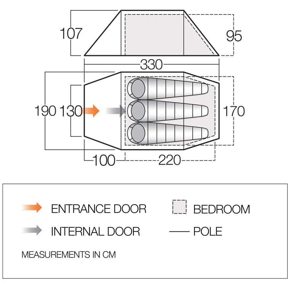 De Vango Scafell 300 plus tunneltent is licht en is makkelijk op te zetten, doordat de binnen- en buitentent aan elkaar vast zit. Het tentdoek is gemaakt van polyester en is zeer waterdicht en houdt de binnentent goed droog. Daarnaast is de binnentent stof ademend en zorgt voor minder condens en comfortabele nachten. De boogstokken zorgen voor een stevige constructie dat de stabiliteit verhoogt. Hierdoor is de tent goed bestand tegen harde windstoten. De banden ondersteunen de stokken op 3 punten en voorkomen zijwaartse bewegingen. De deuren hebben een stuk horrengaas om de tent te ventileren en beestjes buiten te houden. In de handige binnenzakken kunt u extra bagage opbergen. De naden van de tent en de grondzeil zijn goed getapet en zijn hierdoor waterdicht. Deze tent is perfect voor de kampeerders die rondtrekken.