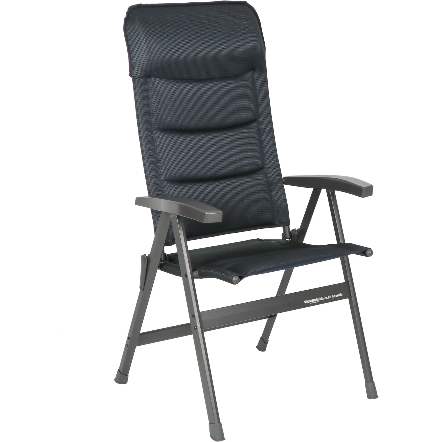 De Majestic Grande DS campingstoel is een luxe, comfortabele campingstoel. Door zijn hogere zithoogte is de stoel nog comfortabeler voor langere mensen. De rugleuning en armleuningen zijn ergonomisch gevormd en verstelbaar in 7 verschillende standen. Daarbij zijn de zitting en rugleuning voorzien van speciaal DuraDore materiaal. Deze luxe gevoerde stof is ademend, weersbestendig en sneldrogend.